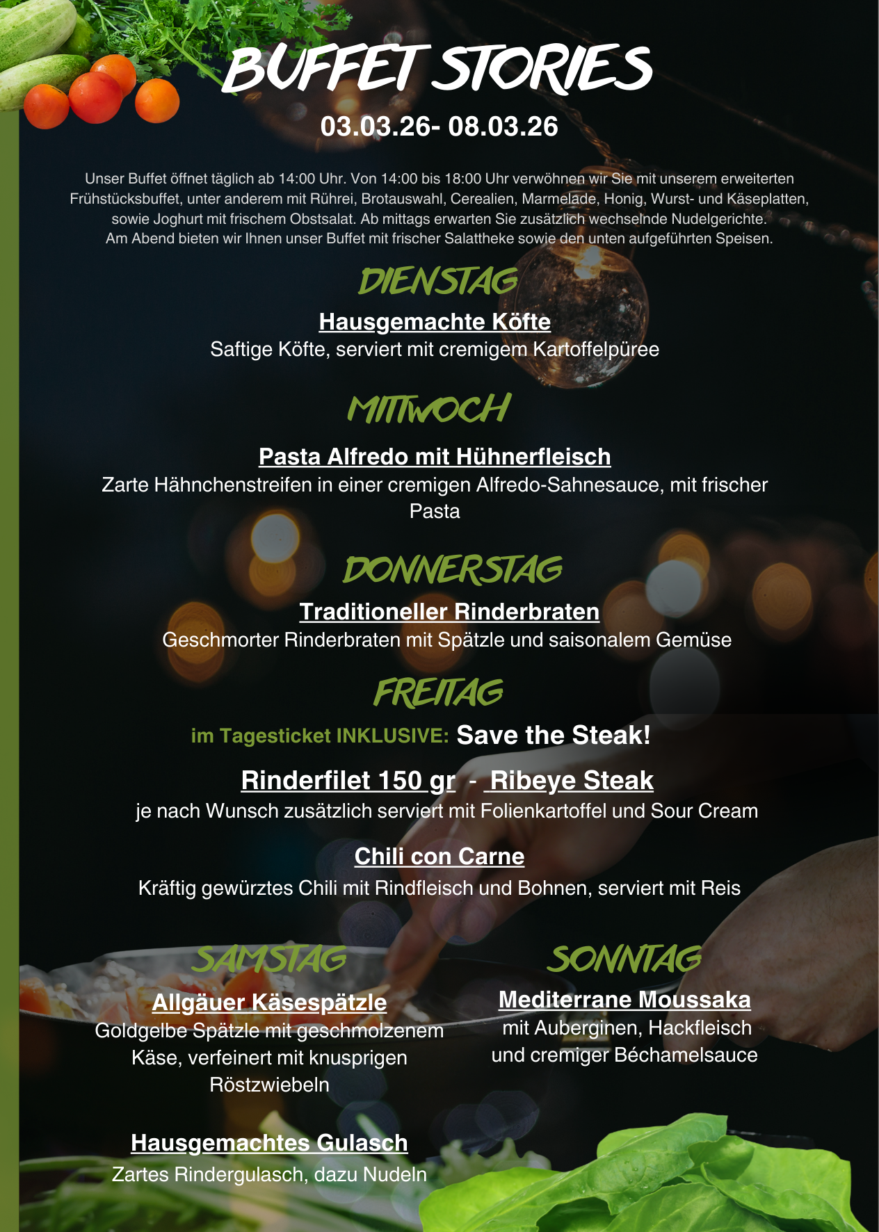 Unser wöchentlich wechselndes Buffet – Genuss, der überrascht!