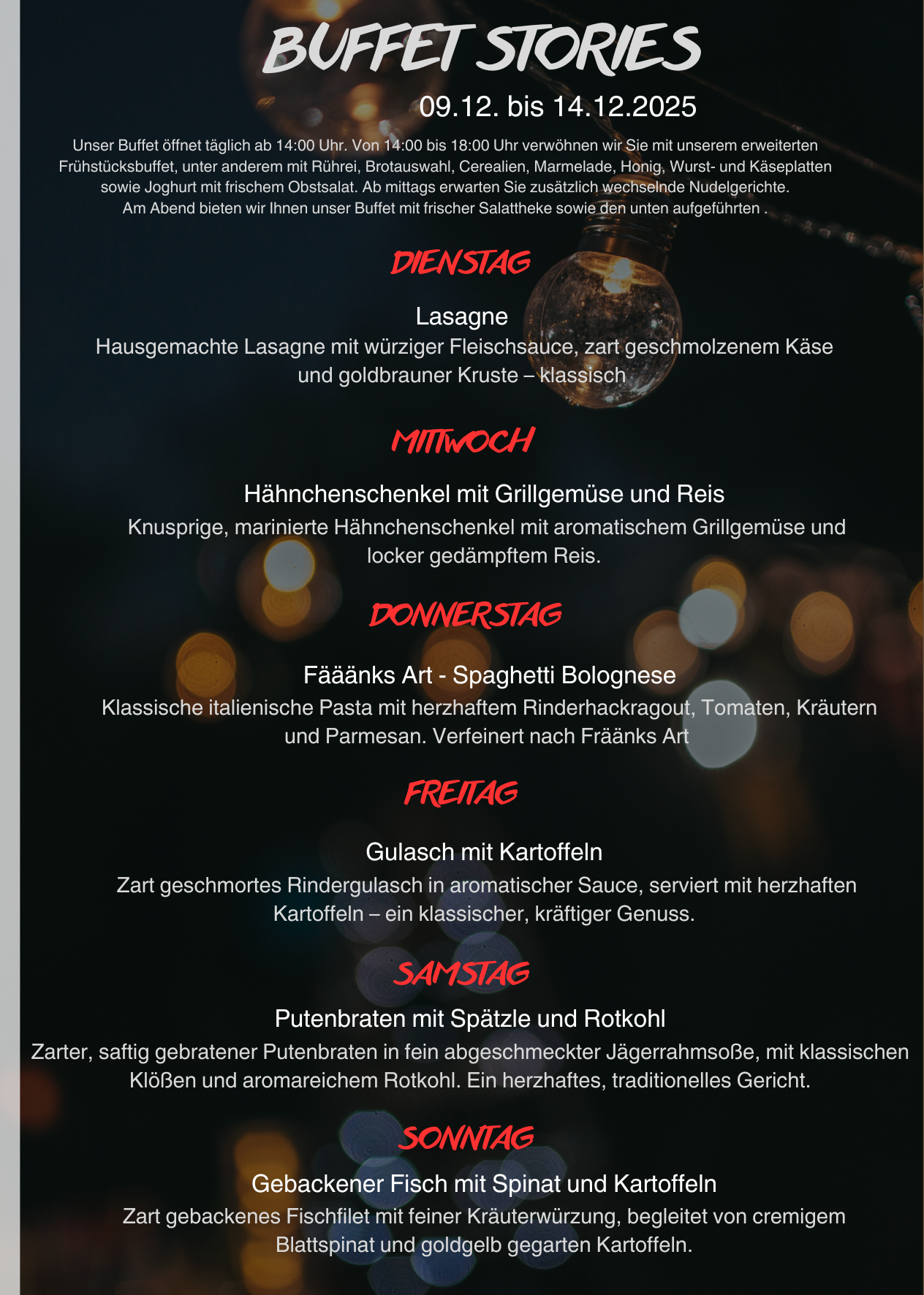 Unser Buffet öffnet täglich ab 14:00 Uhr.